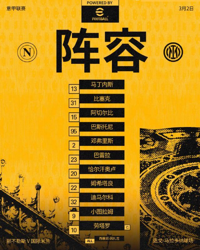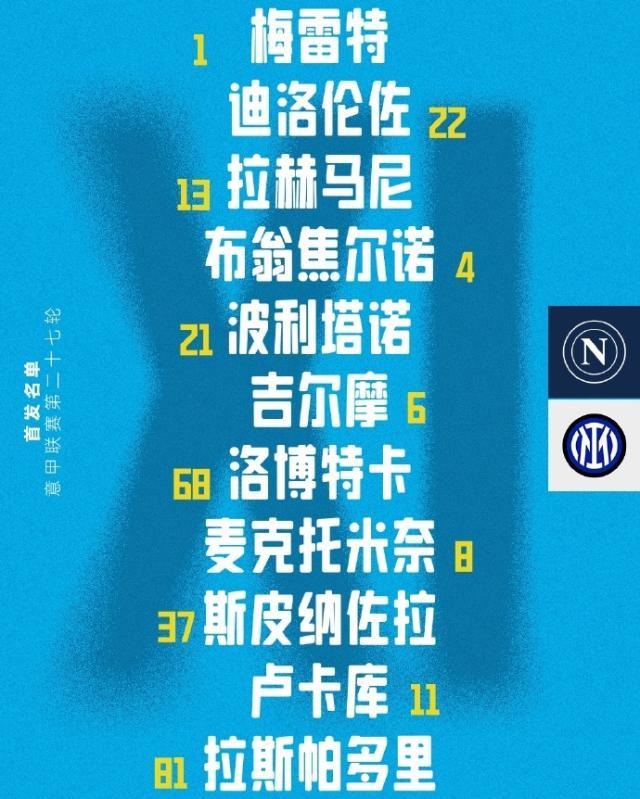 意甲第27轮上演榜首大战,那不勒斯主场迎战国际米兰。上半场迪马尔科任意球世界波为国米取得领先,下半场那不勒斯大举反攻,在比赛结束前由替补出场的比林扳平比分。那不勒斯连续5轮不胜(4平1负),国际米兰仍以1分优势领跑积分榜。