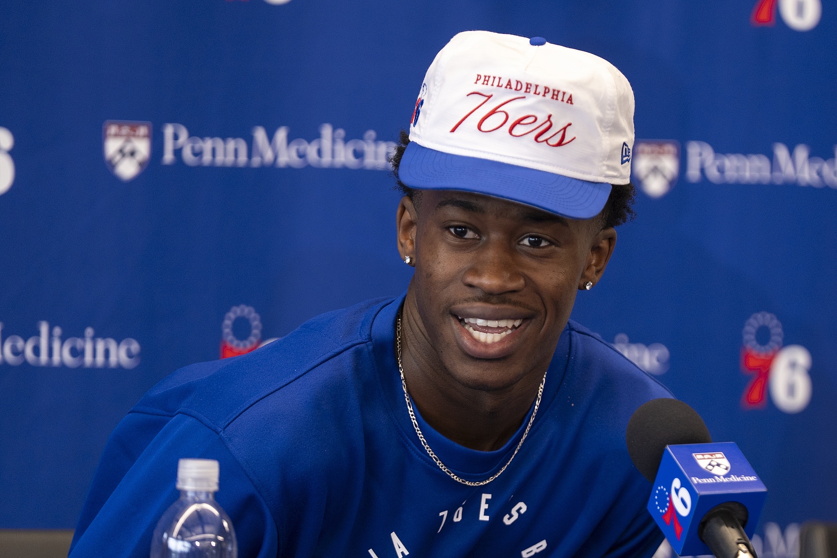 现在,我有机会四处看看。我已经尝过了费城芝士牛排,还跑上了洛基台阶。我正在逐渐适应这里,找到自己的方向。但我真的很期待赢得你们、我的队友和教练的尊重。我只想像海绵一样学习和吸收,希望能变得更好。